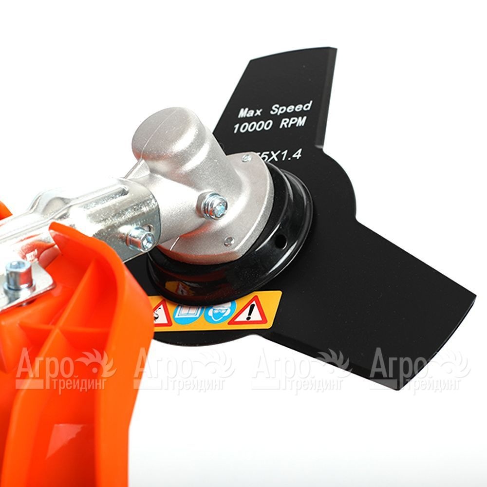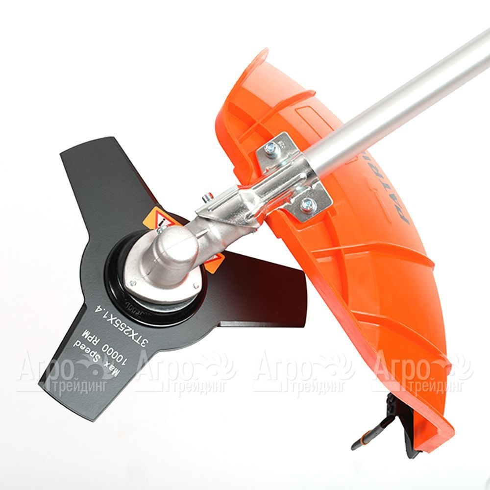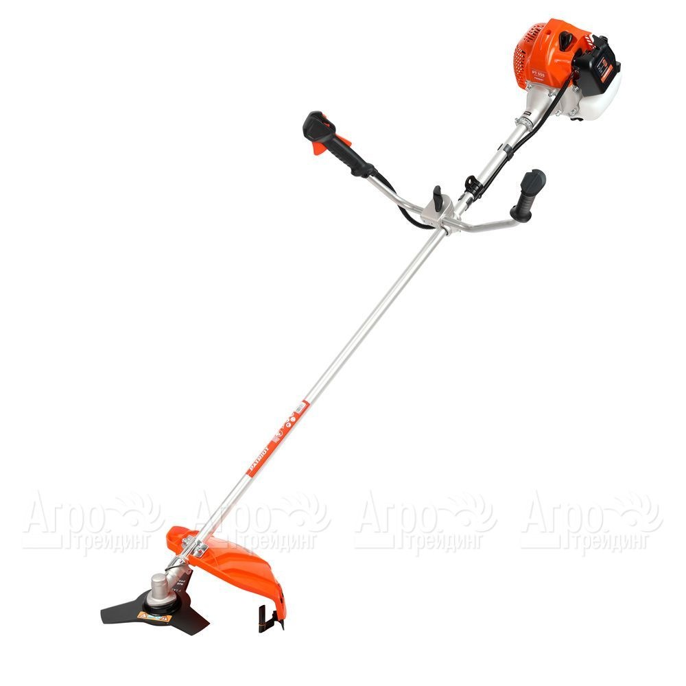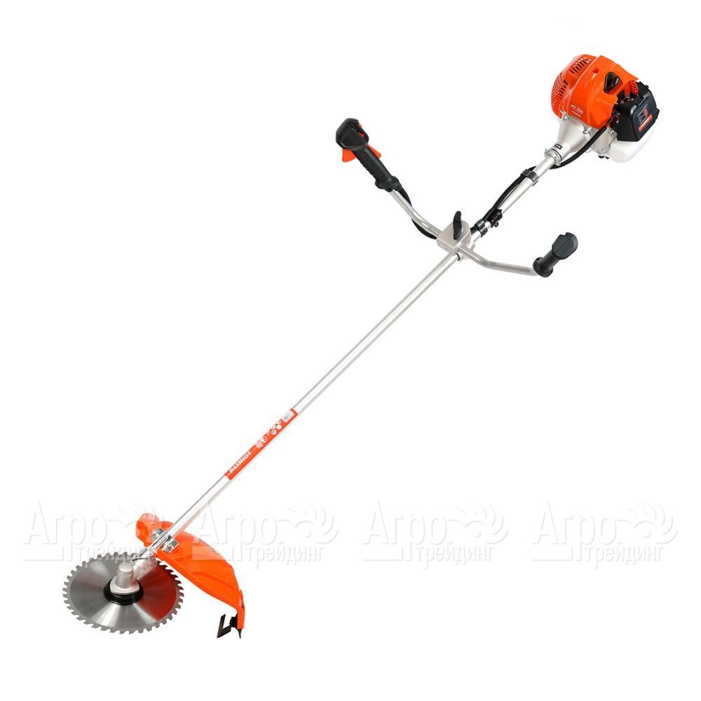 Базовая комплектация: 3-х лопастной, 80-зубовый диск с победитовыми напайками, катушка с леской, плечевой ремень
