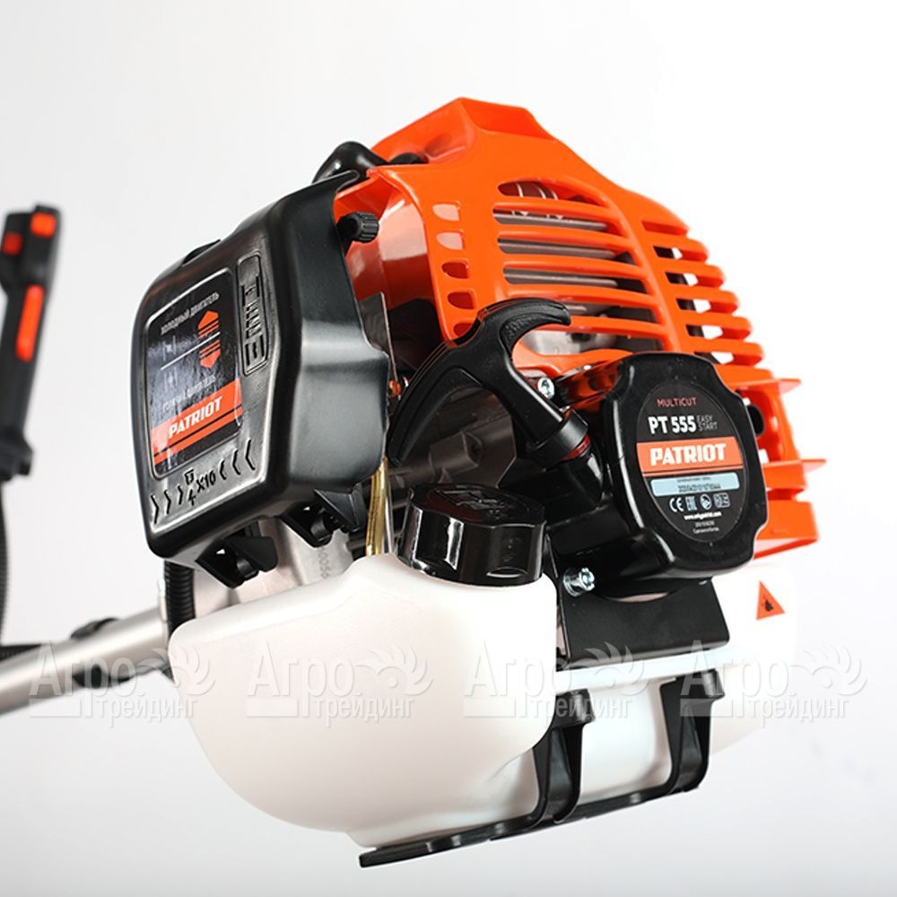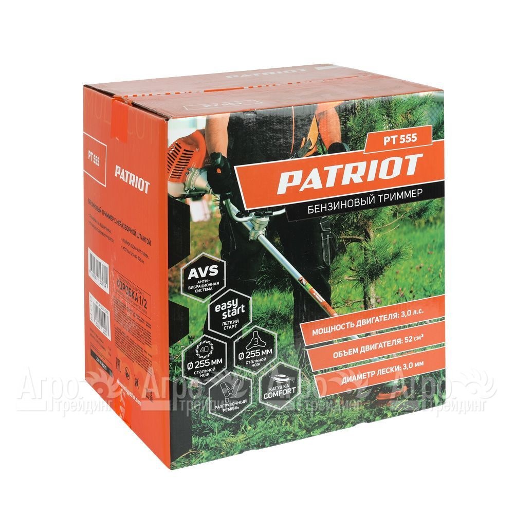 Бензокоса (бензиновый триммер) Patriot PT 555 - инструмент, обладающий высокой мощностью, позволяющий очищать большие участки от дикой растительности -бурьяна и поросли кустарников и деревьев. Прямая штанга оснащена рукояткой, имеющей форму велосипедного руля, которая не ограничивает амплитуду размаха. Рукоятку в бензокосе (бензиновом триммере) Patriot PT 555 можно настроить в удобное положение для комфортной работы пользователя.