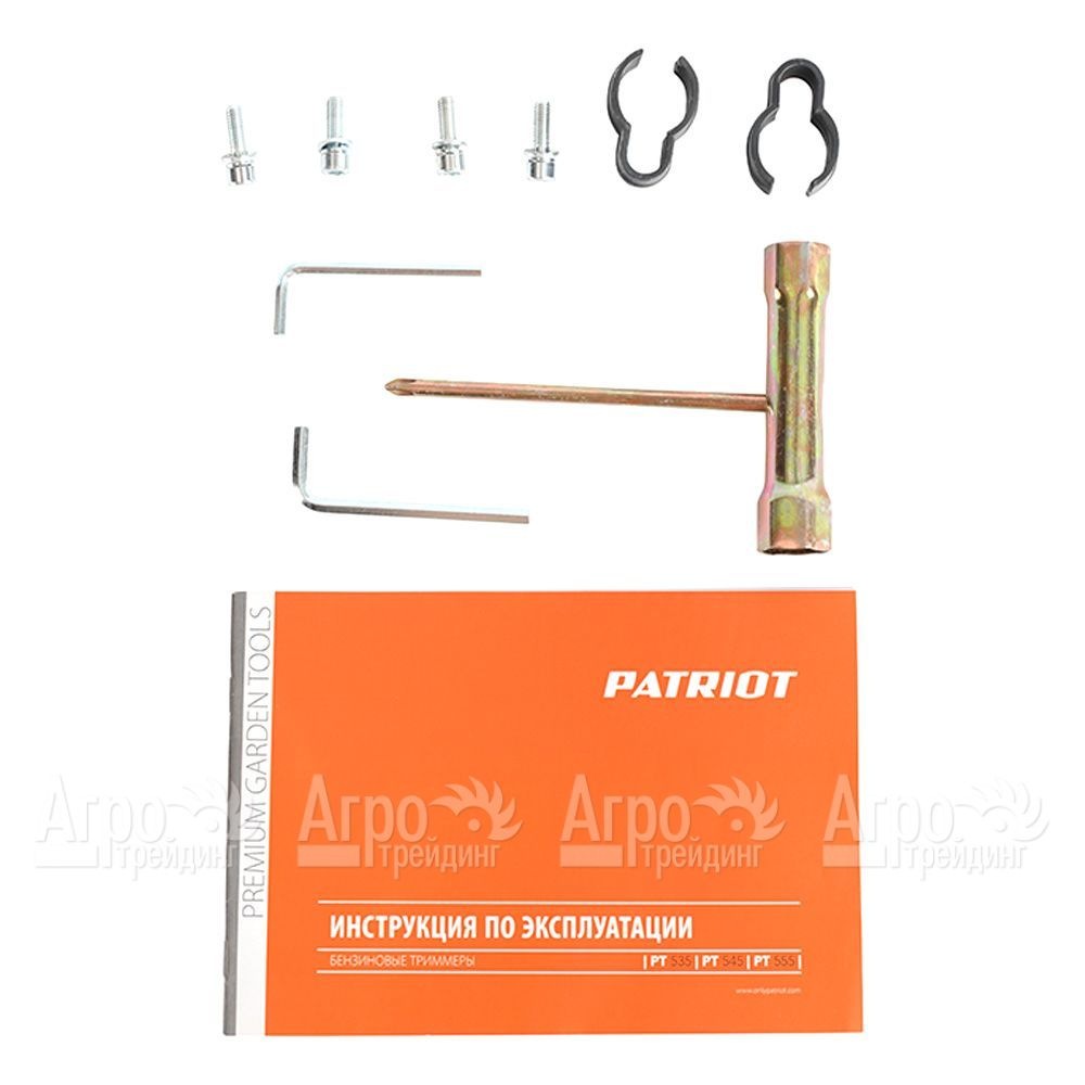 На фотографии Бензокоса (бензиновый триммер) Patriot PT 555 + диск, катушка с леской: