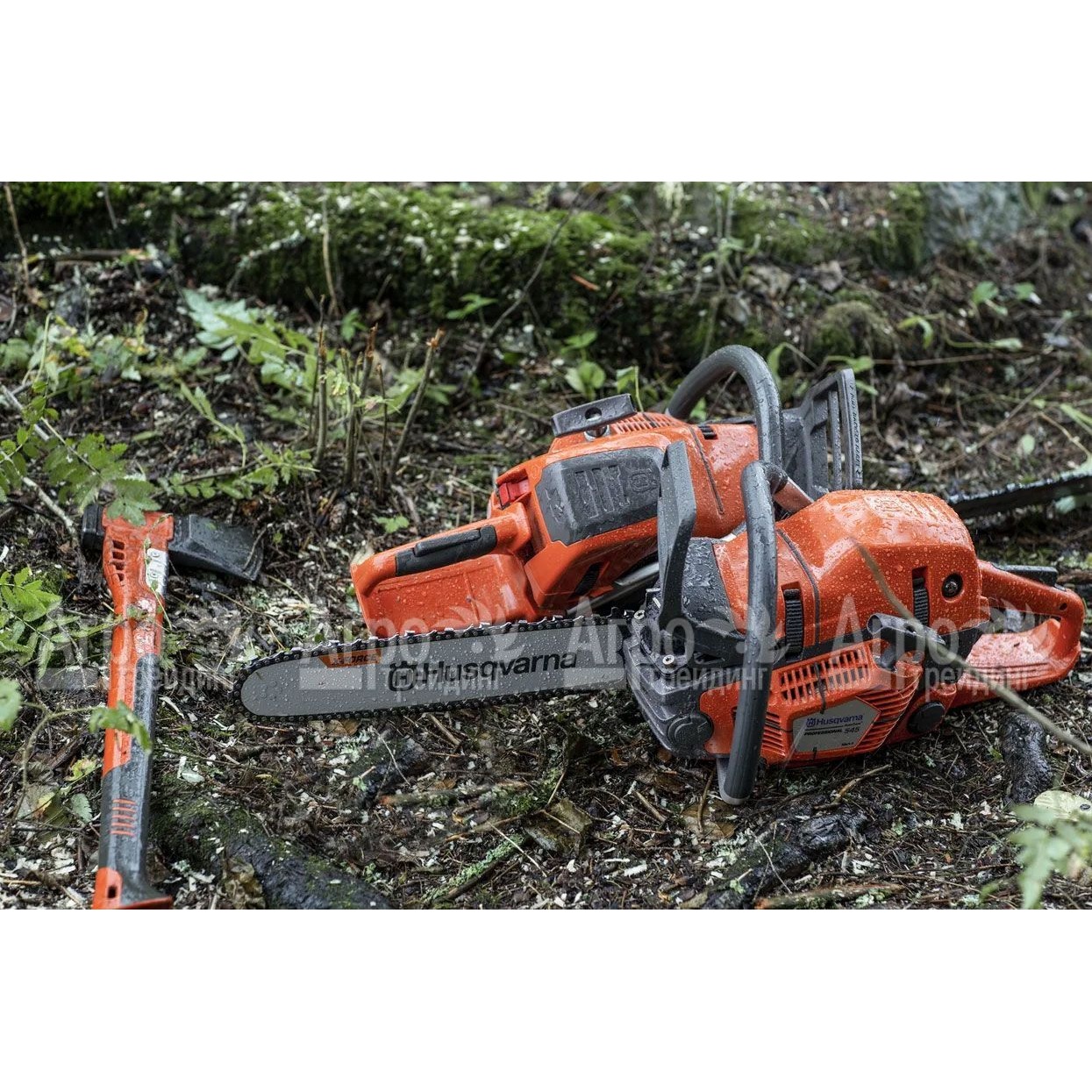 - Система торможения цепи увеличивает безопасность при работе, минимизируя риск отдачи.