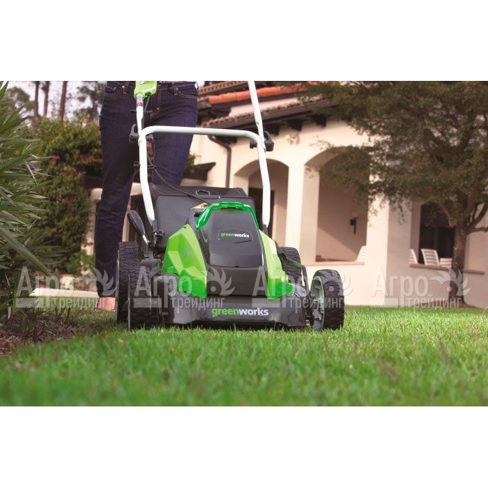 На фотографии Газонокосилка аккумуляторная GreenWorks G40LM45K6: