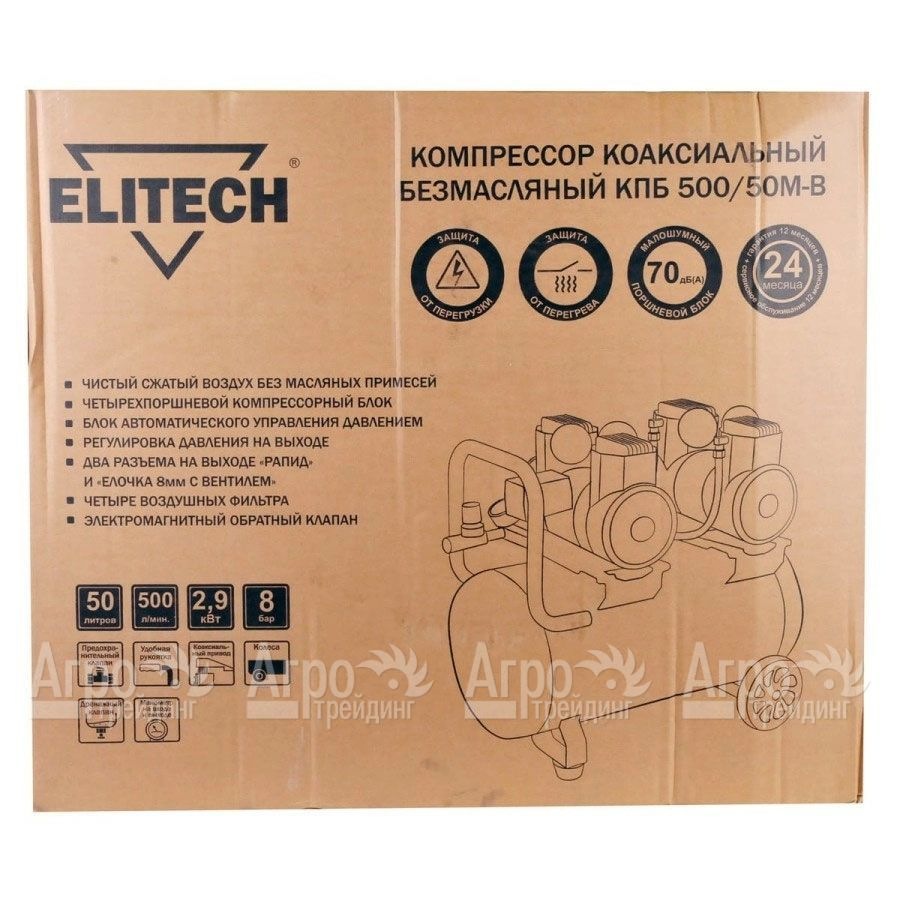 На фотографии Компрессор поршневой безмасляный Elitech КПБ 500/50М-В: